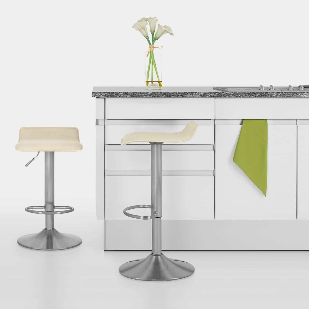 Covered in cream faux leather, the seat has a practical backless design making it simple to manoeuvre underneath a range of different bar heights.