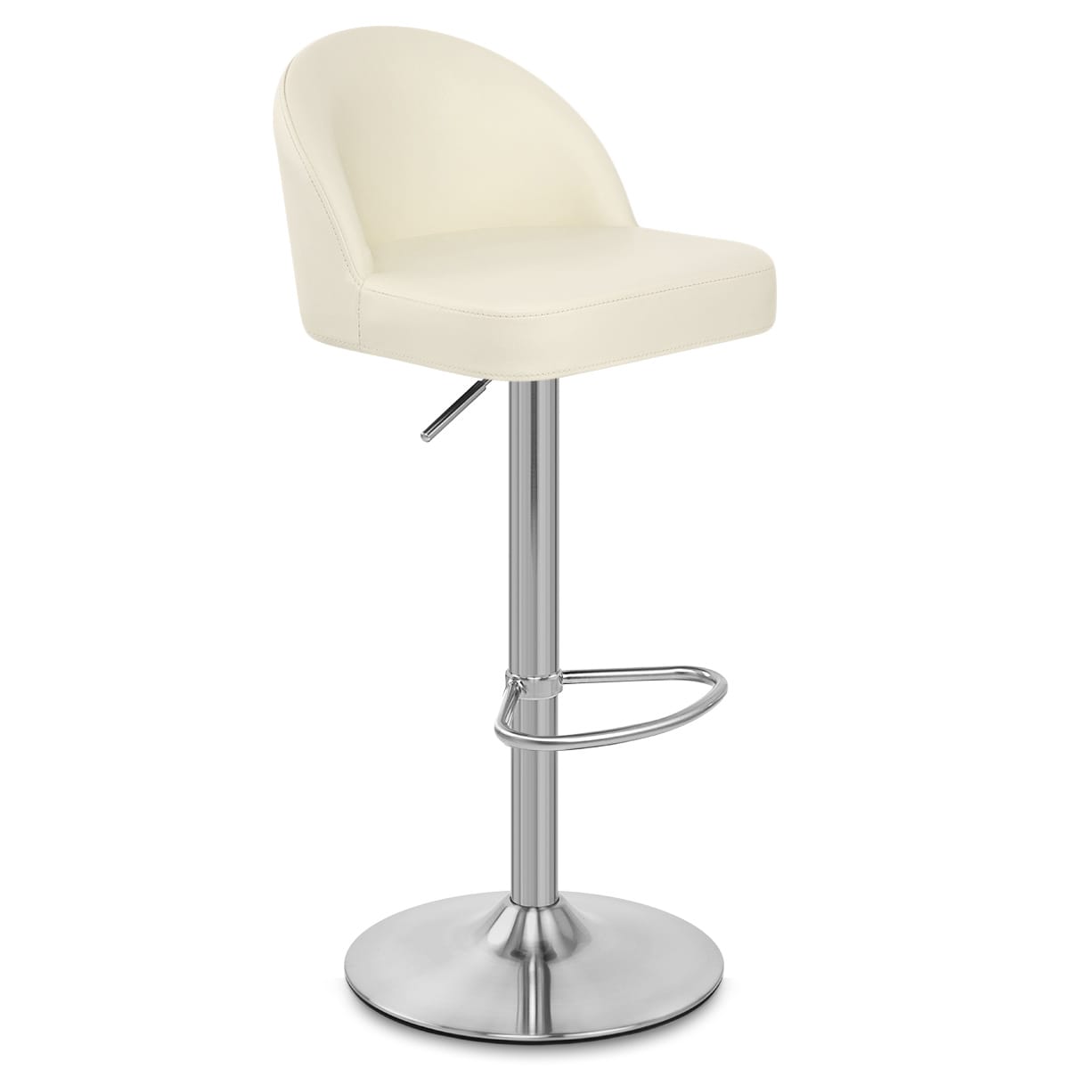 For great versatility, the brushed steel frame incorporates a gas-lift and swivel function, and a footrest provides additional support. The Mimi features a traditional rounded base with a protective underside, designed to help to keep your floors looking fabulous.