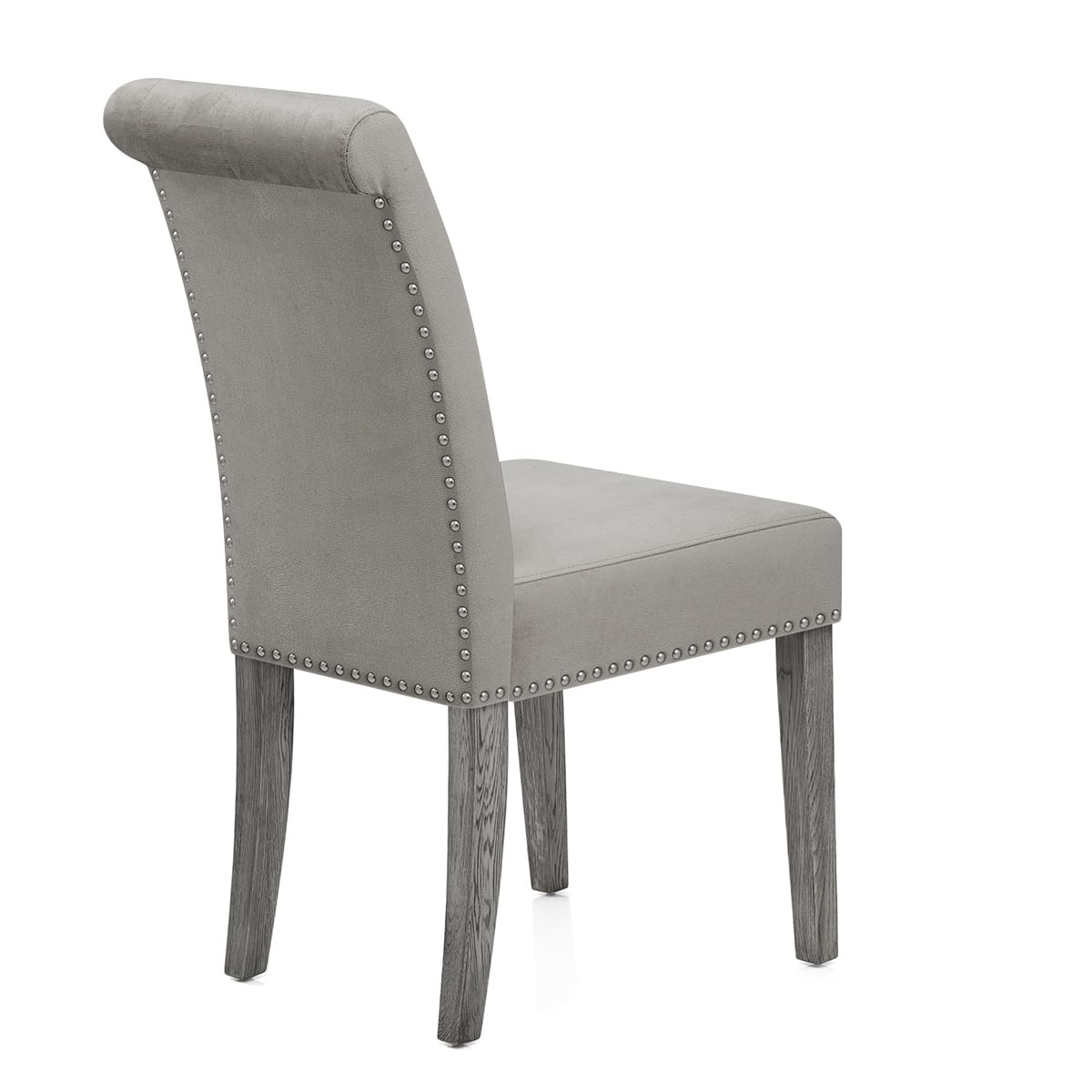 The frame, formed of four tapered legs, is crafted from solid wood, with a grey wash finish complementing the seat colour. Protective floor plugs are also included to help keep your floors safe from scuffs.