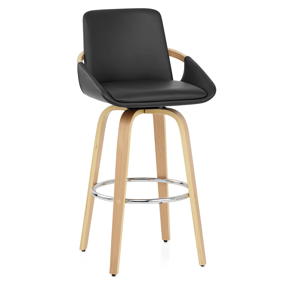 The seat of the Ohio features a padded black faux leather covering for ultimate comfort. It also has a high backrest that curves perfectly to the body, providing excellent support. The backrest and seat pad are set within an outer faux leather shell, giving it a sleek and modern appearance. Additionally, the seat is designed with an oak finished bentwood wraparound bar that flows into triangular winglets for added style and support.