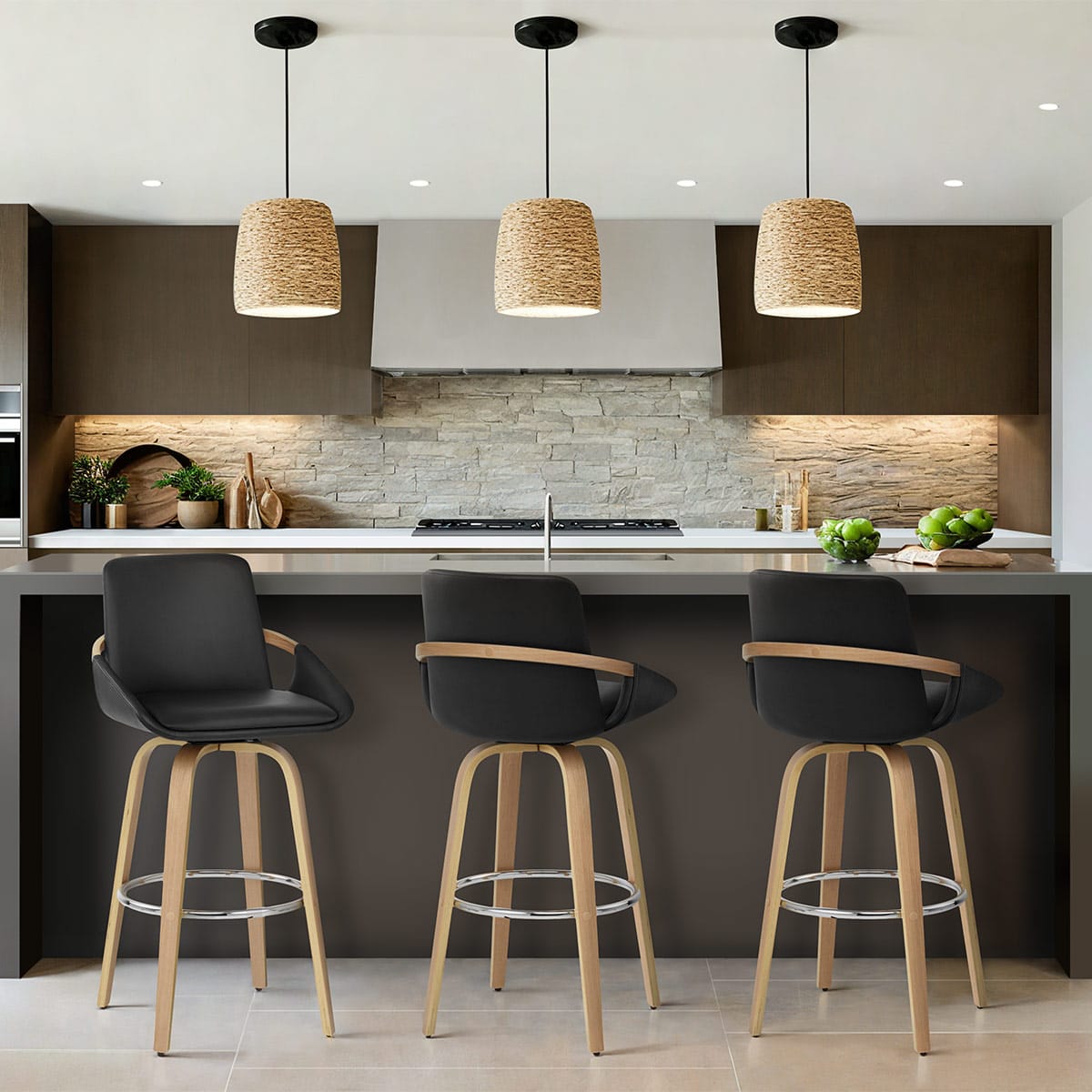 Bar stools generally come in two main heights - kitchen counter (around 65cm) and bar height (around 75cm). Measure the distance from your floor to the underside of your counter and leave around 25–30cm for comfortable legroom.