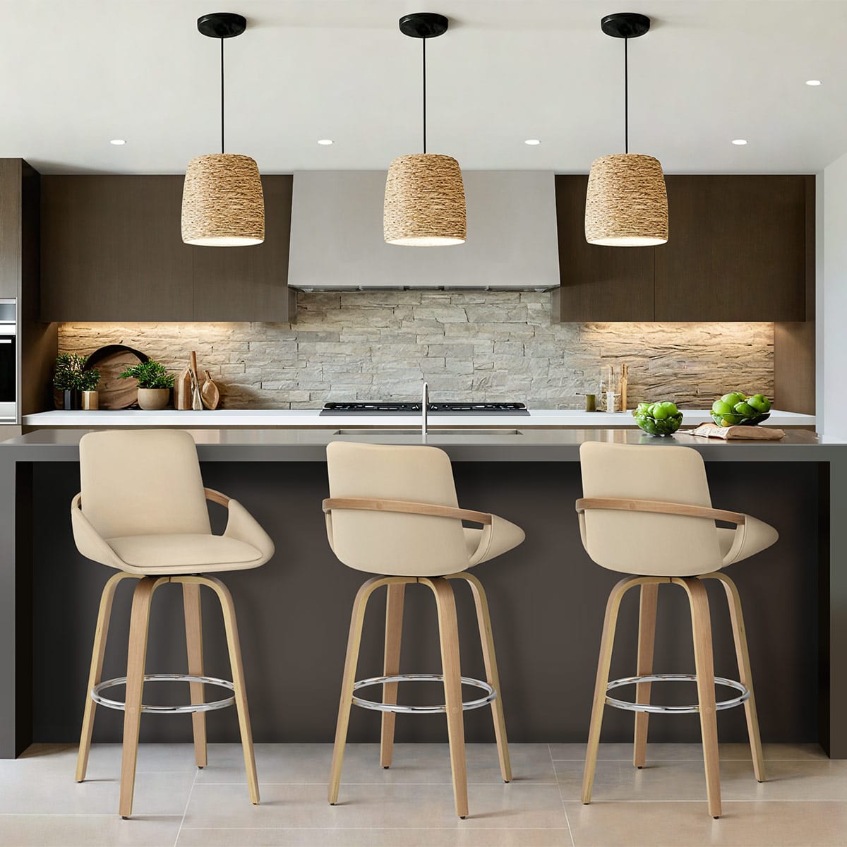 Bar stools generally come in two main heights - kitchen counter (around 65cm) and bar height (around 75cm). Measure the distance from your floor to the underside of your counter and leave around 25–30cm for comfortable legroom.