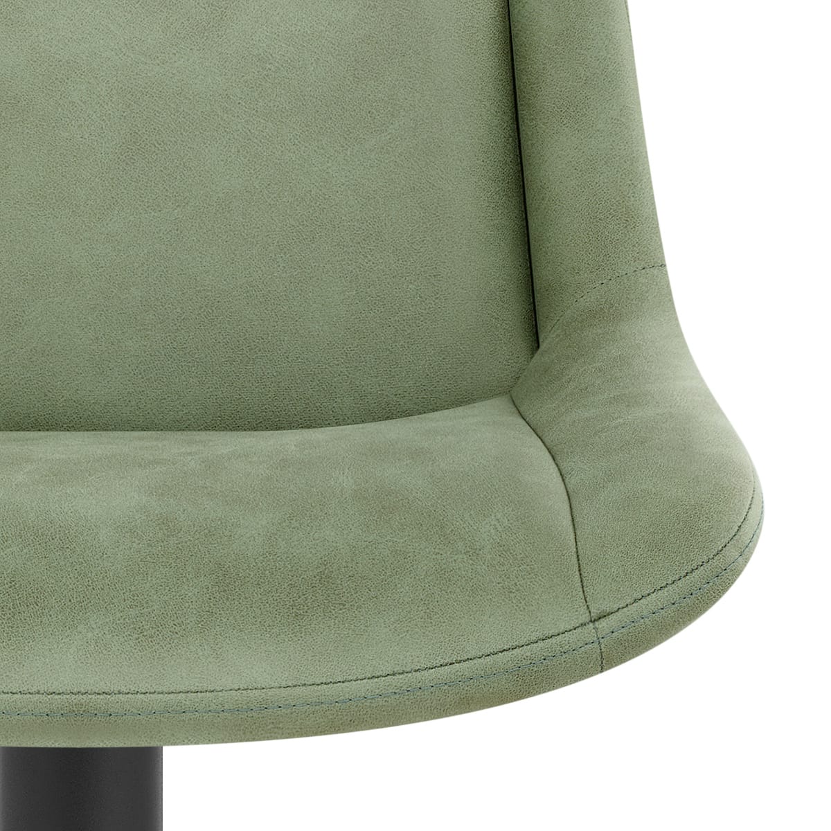 Green faux leather drapes the entire seat and for superior comfort, it is padded throughout with thick foam. A wraparound shell creates the base of the seat shape and encases a medium height backrest that extends upwards, decorated with a line of stitch detail. The cushioned pad is edged with side wings that frame its shape, creating a wide and comfortable place to sit.