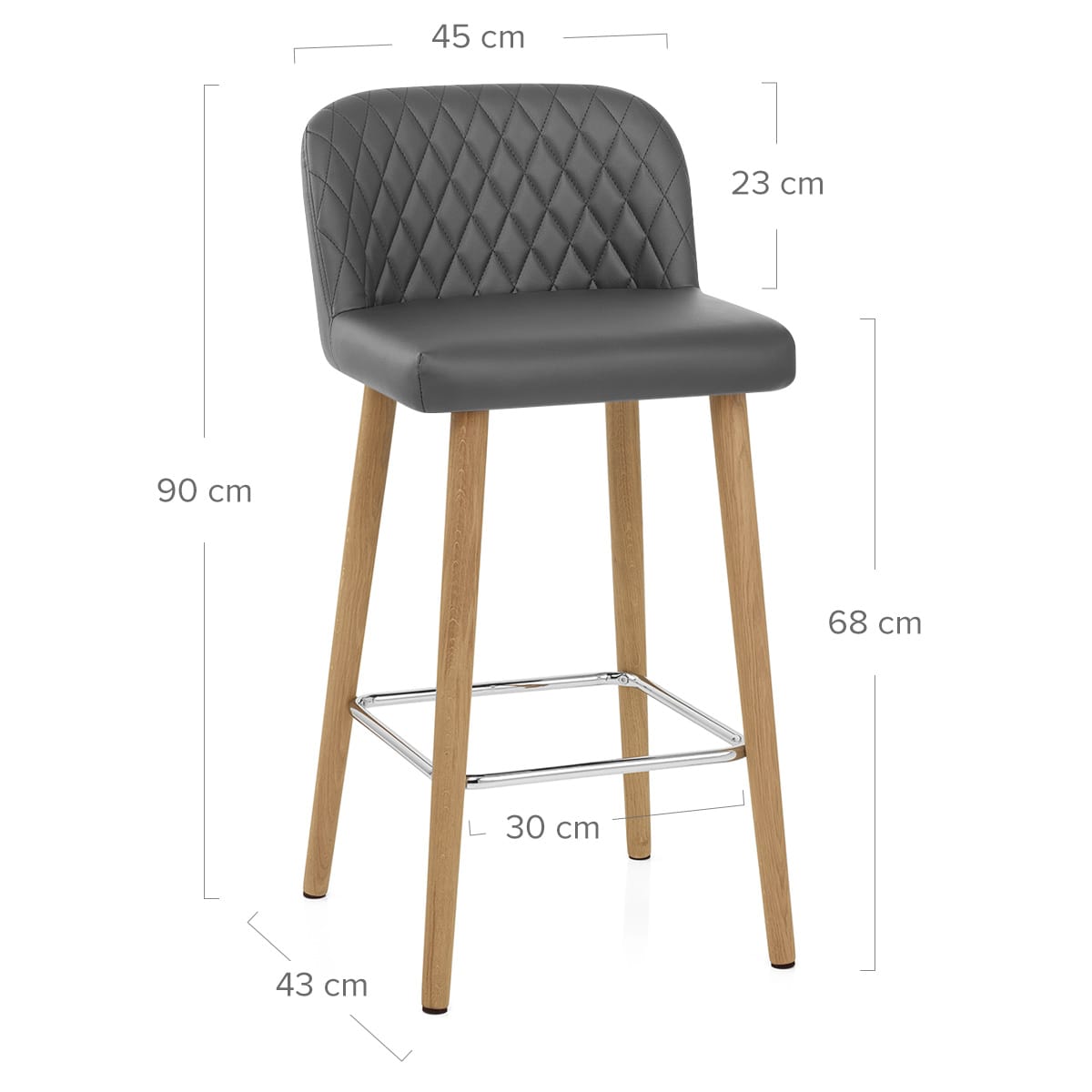 The stool includes a solid wood frame that incorporates a lovely oak finish. Rounded legs taper to the floor and are supported by a contrasting chrome footrest, while protective floor pads on the underside help prevent scuffing on your floors.