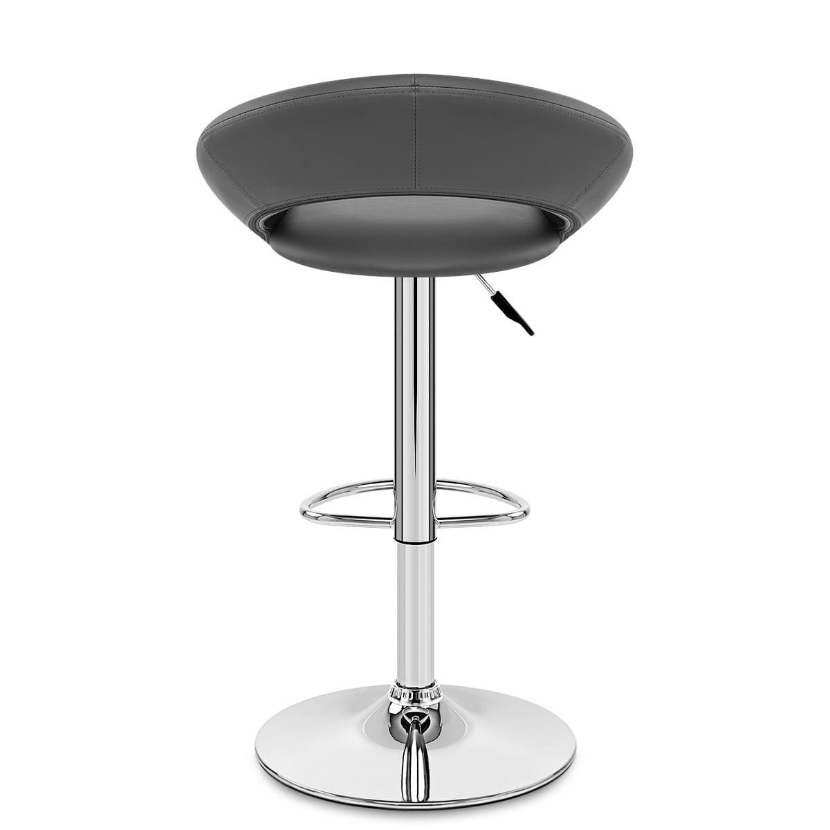 The chrome metalwork produces an eye-catching, glossy effect while the horseshoe-shaped footrest effuses comfortable charm. Integrating a variable height mechanism and 360-degree swivel, the stool can be customised in accordance with your needs. Operating as a stool that suits all circumstances, it even includes a protective rubber ring on the rim of the base, protecting your floor from marks or scratches.