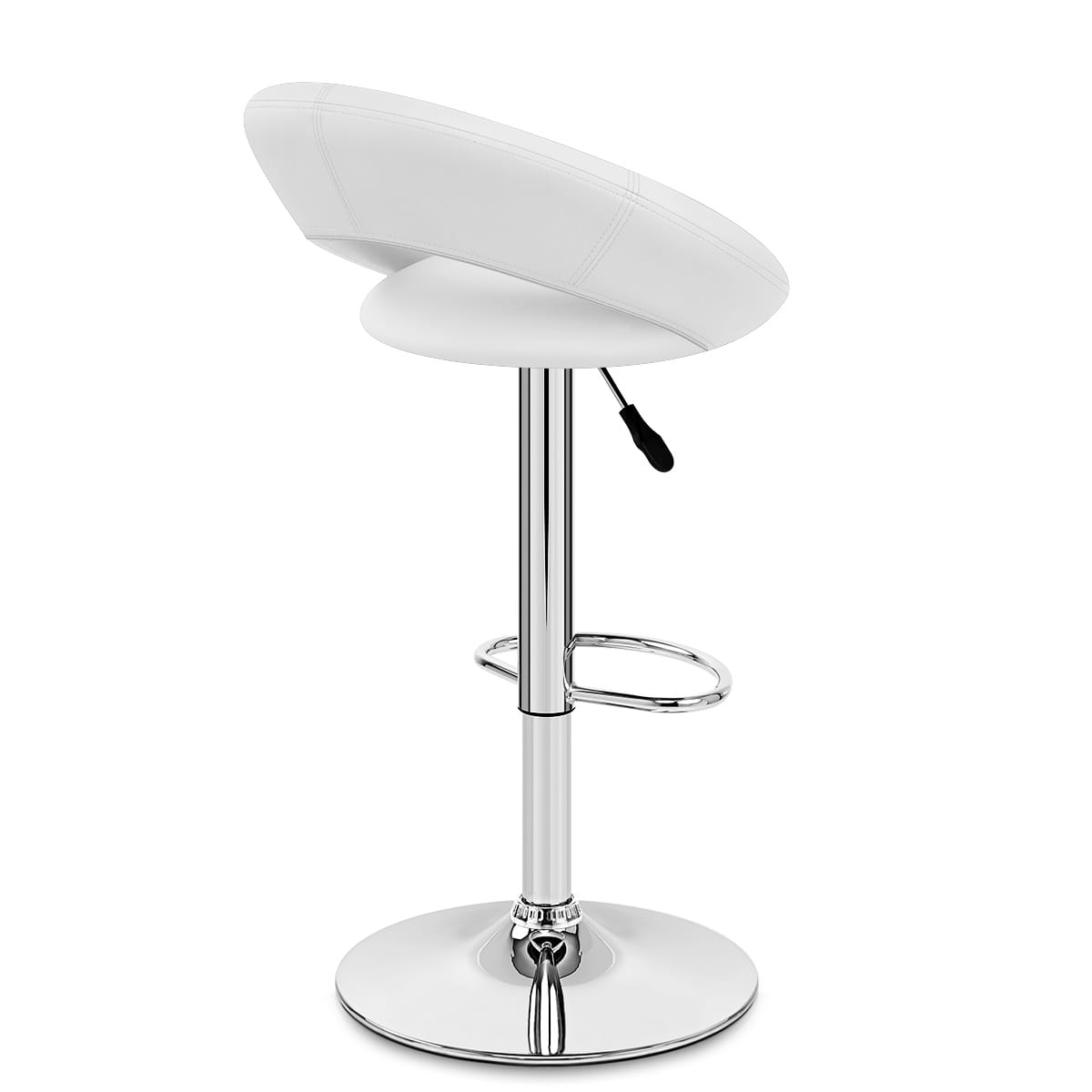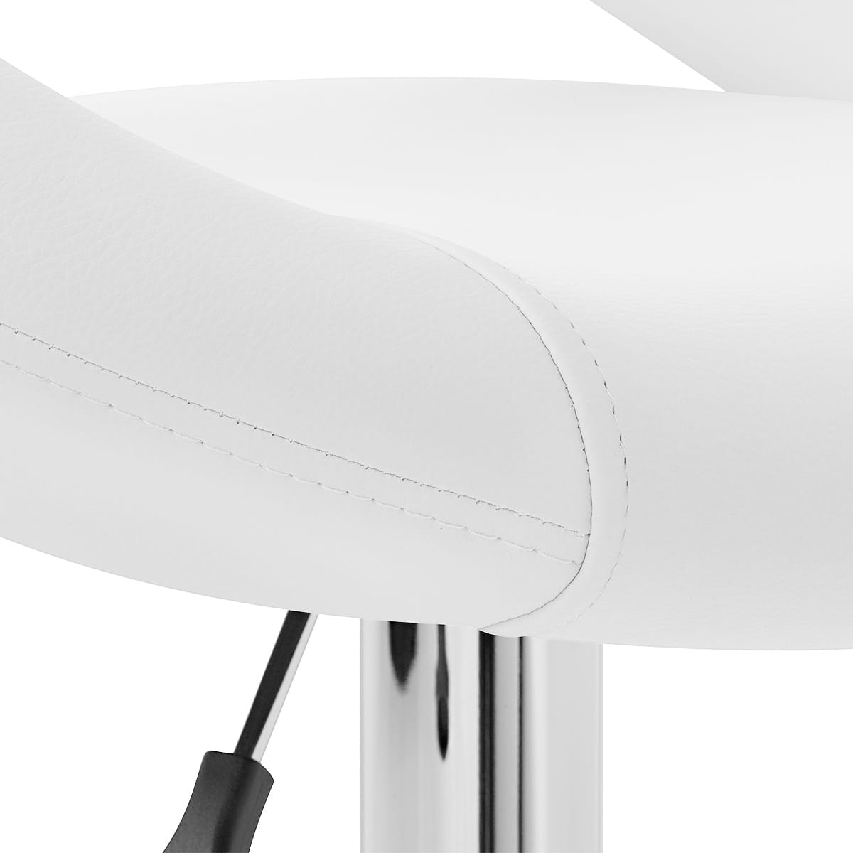 With a high arching backrest, it is easy to see where the Padded Crescent gets its name from. As well as giving the stool a dynamic profile, it also provides excellent support and comfort even for long hours of use. This sumptuously padded backrest wraps around the seat, padded in like fashion and covered in soft white faux leather, the white bringing a feel of freshness and airiness, with class and chic that transfers to the atmosphere.