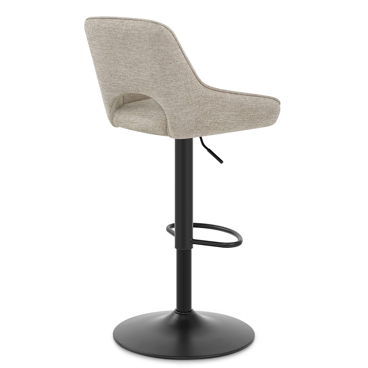 Using a black powder coated finish, the metal frame contrasts attractively against the light fabric. It houses a gas lift mechanism, allowing for a 360-degree swivel and for the height to be modified. A smooth and stylish footrest lets the user feel even more supported while resting. Finally, the circular base is equipped with a matching circular floor protector, reducing marks to your surface.
