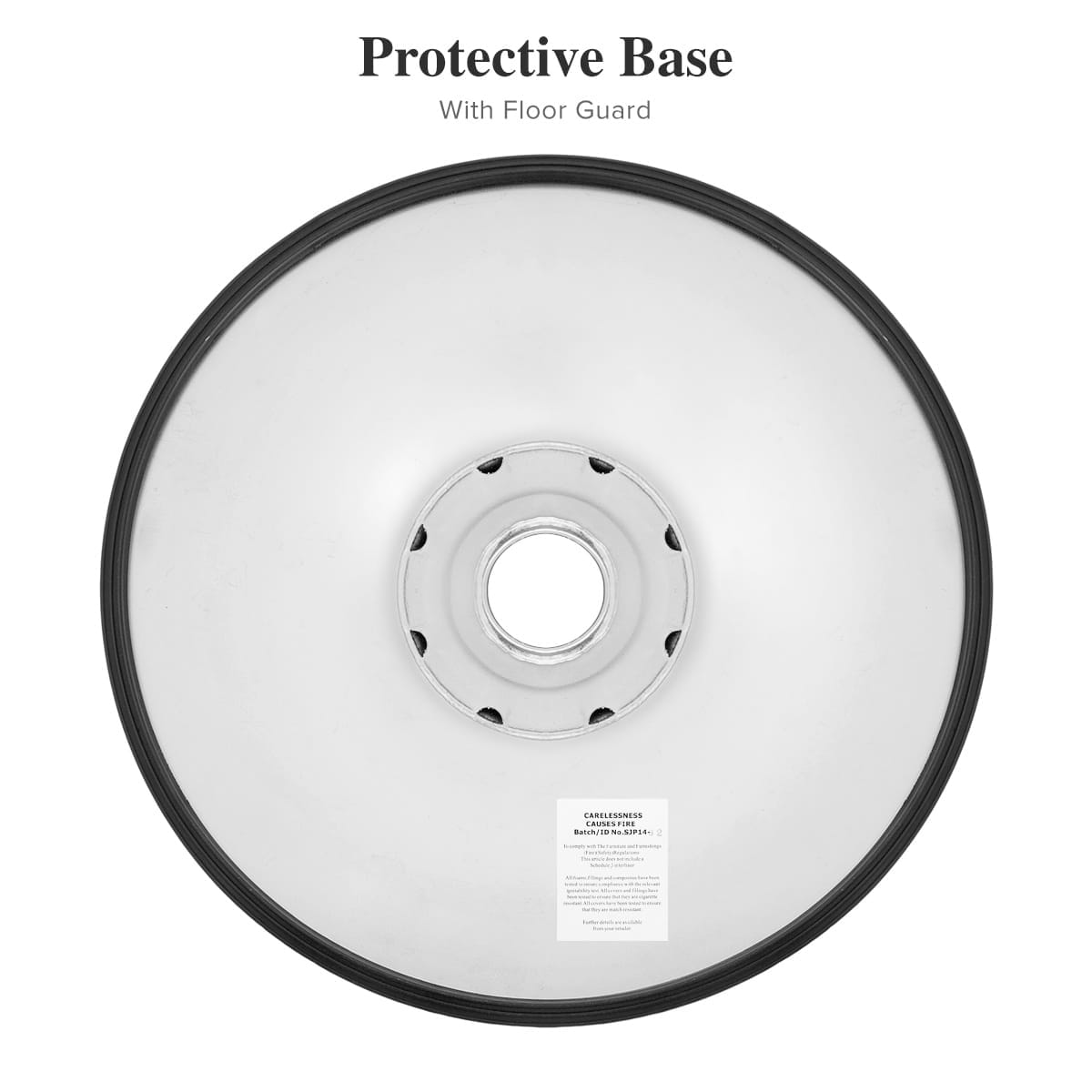 The metal frame uses a brushed graphite finish to pop against the ivory seat. Housed within is an intelligent, gas lift mechanism. This grants you access to height adjustment features and a 360-degree seat swivel. A stylish footrest sits beneath the seat, and acting as a solid foundation is the circular base below, equipped with a round floor protector, minimising marks to the flooring.