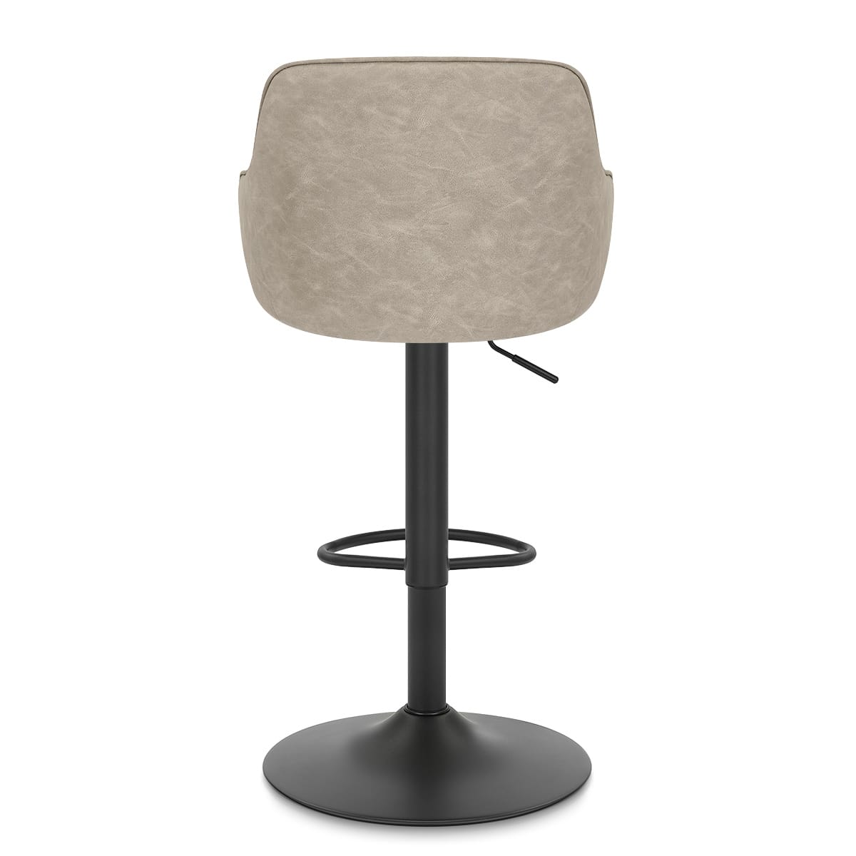 Contemporary styled and classically practical, the frame is crafted from a high-quality metal and finished in a black satin powder coating for a sophisticated aesthetic. The adjustable gas lift mechanism allows you to easily adjust the height of the bar stool, while its 360-degree swivel rotation makes it easily accessible. A half-moon footrest provides you with additional support, while the domed base and concealed rubber guard ensure stability and floor protection.