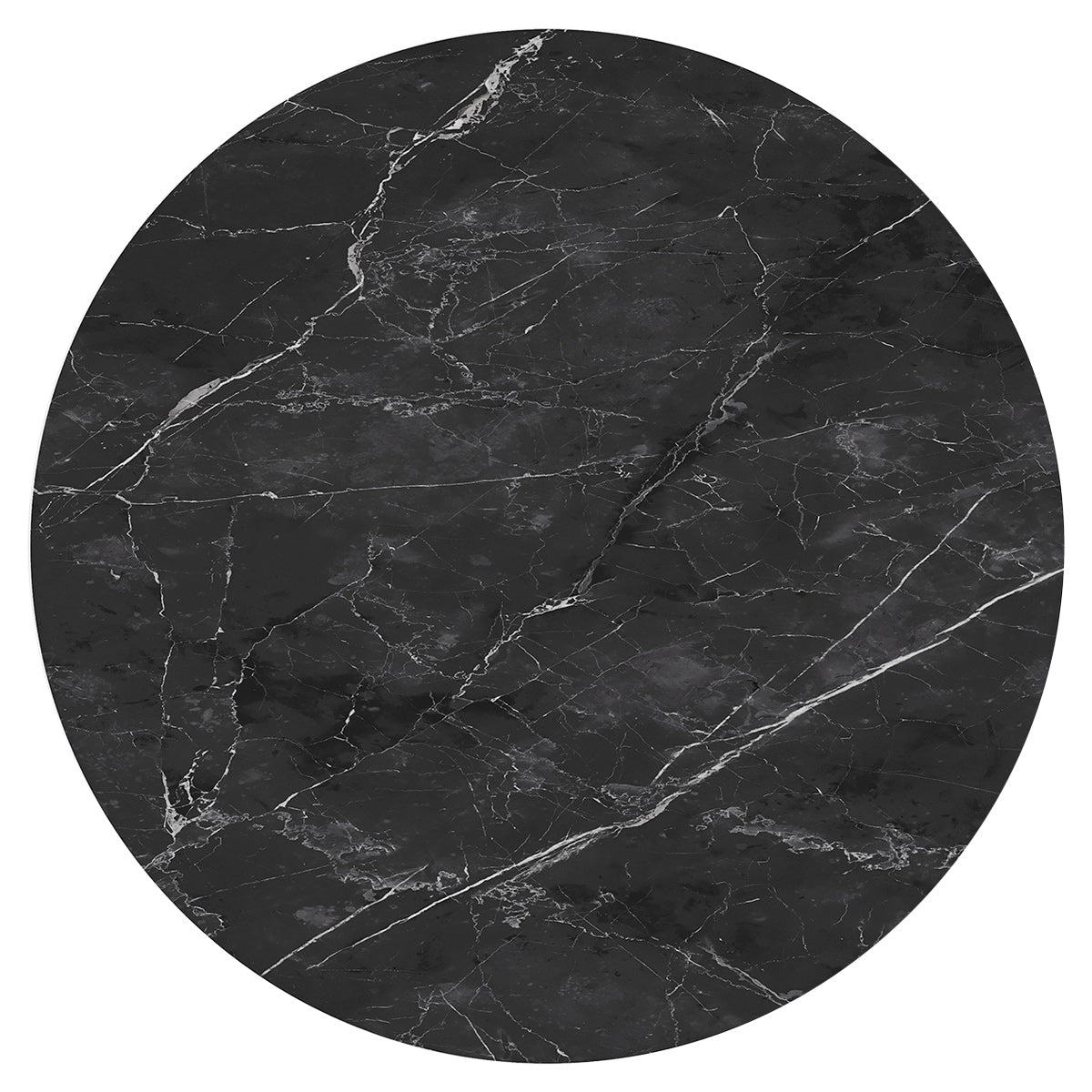 A purposeful pedestal frame is finished in satin black metal. A strong, central column rises to support the top before descending into a broad domed base that mirrors the circular form above. Engineered for steadiness and balance, the frame combines durability with a crafted quality. A discreet protective guard beneath aids in the protection of your surfaces, reinforcing the design to be as practical as it is visually commanding.