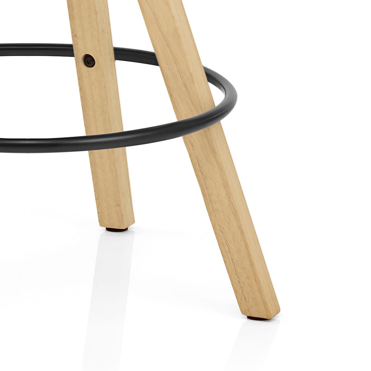 Standing tall beneath the seat, the solid wooden frame includes four square-shaped legs in an oak finish. As the legs taper towards the floor, a black satin footrest sits on the outside of the frame for extra support and visual contrast. Under each leg is a protective pad to prevent damage to your floors.