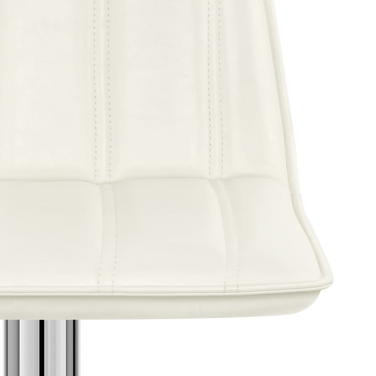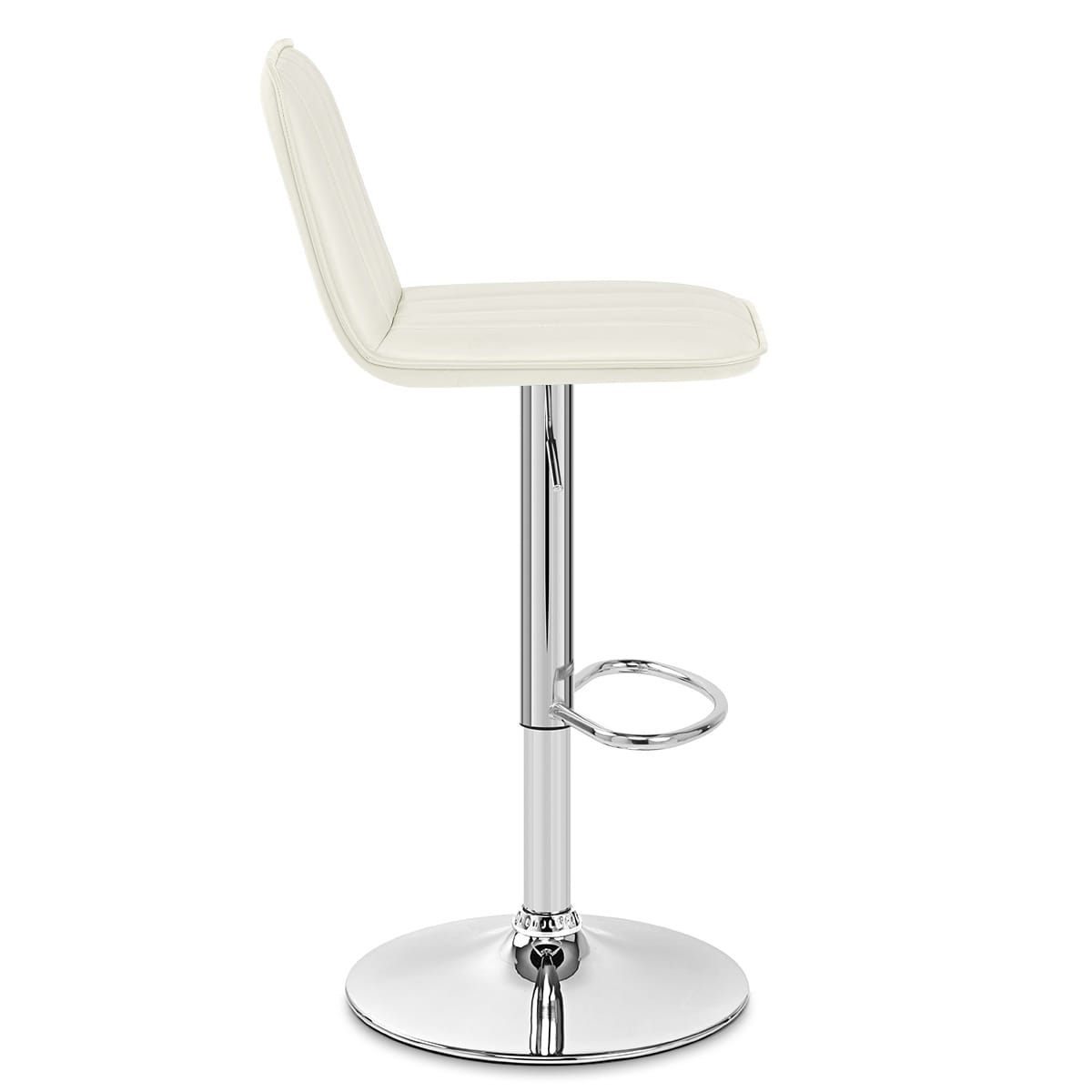 Adding a gas lift mechanism allows the seat to be rotated through 360 degrees, and the stool's frame also includes adjustable height and a half moon footrest for greater practicality. A polished chrome finish is applied to the frame as a contemporary accent to the seat. Below the column sits a circular base complete with floor guard, offering stability as well as helping to protect against scratches.