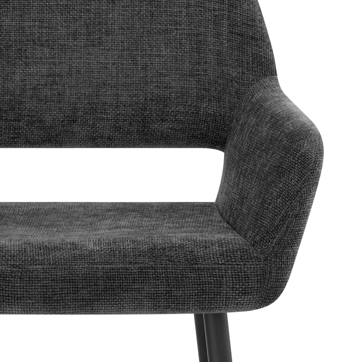 Covered in an ageless black fabric for everlasting appeal, the comfortably padded seat strikes a real modern vibe. An encompassing seat is inclusive of a high supportive backrest which descends into two connecting arms that encase a softened seat pad. A shapely cut out at the bottom of the back adds a visually space saving quality and assists in moving the stool when needed.