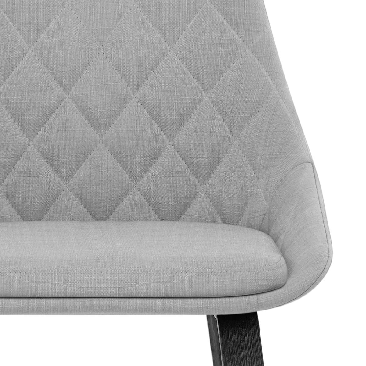A well-padded seat is cloaked in sumptuous light grey fabric, affording a stylish finish. The inset, cushioned pad is juxtaposed by the diamond stitch detail that covers the encompassing sides and the medium-height backrest, providing a lasting impression of comfort.