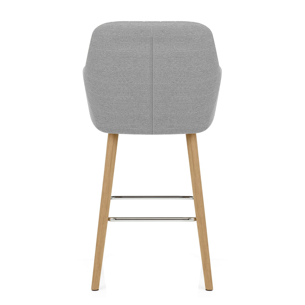 The Rio's padded seat exudes a sense of luxury from every angle and is covered in comfortable grey fabric. The high backrest and supportive armrests feature vertically stitched panels, which contrast with the cushioned seat pad and lend the stool a look of supreme elegance.