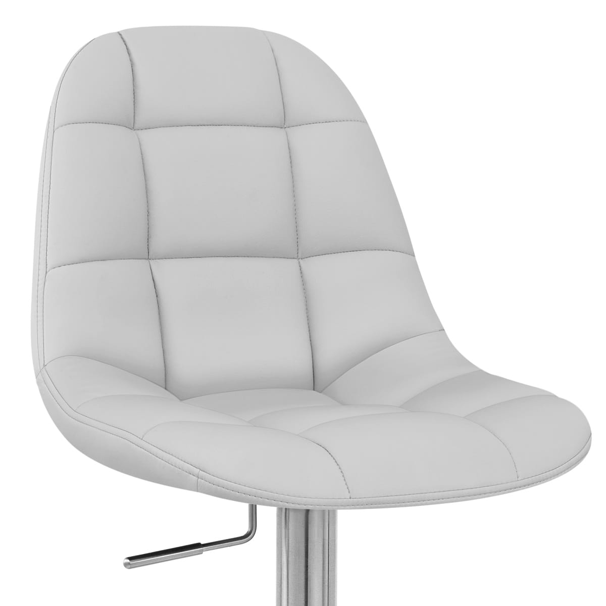 Detailed with a fashionable grid stitch pattern, the grey faux leather seat characterises contemporary class. Incredible comfort is also added with the dense foam padding and the tall backrest that is super supportive.