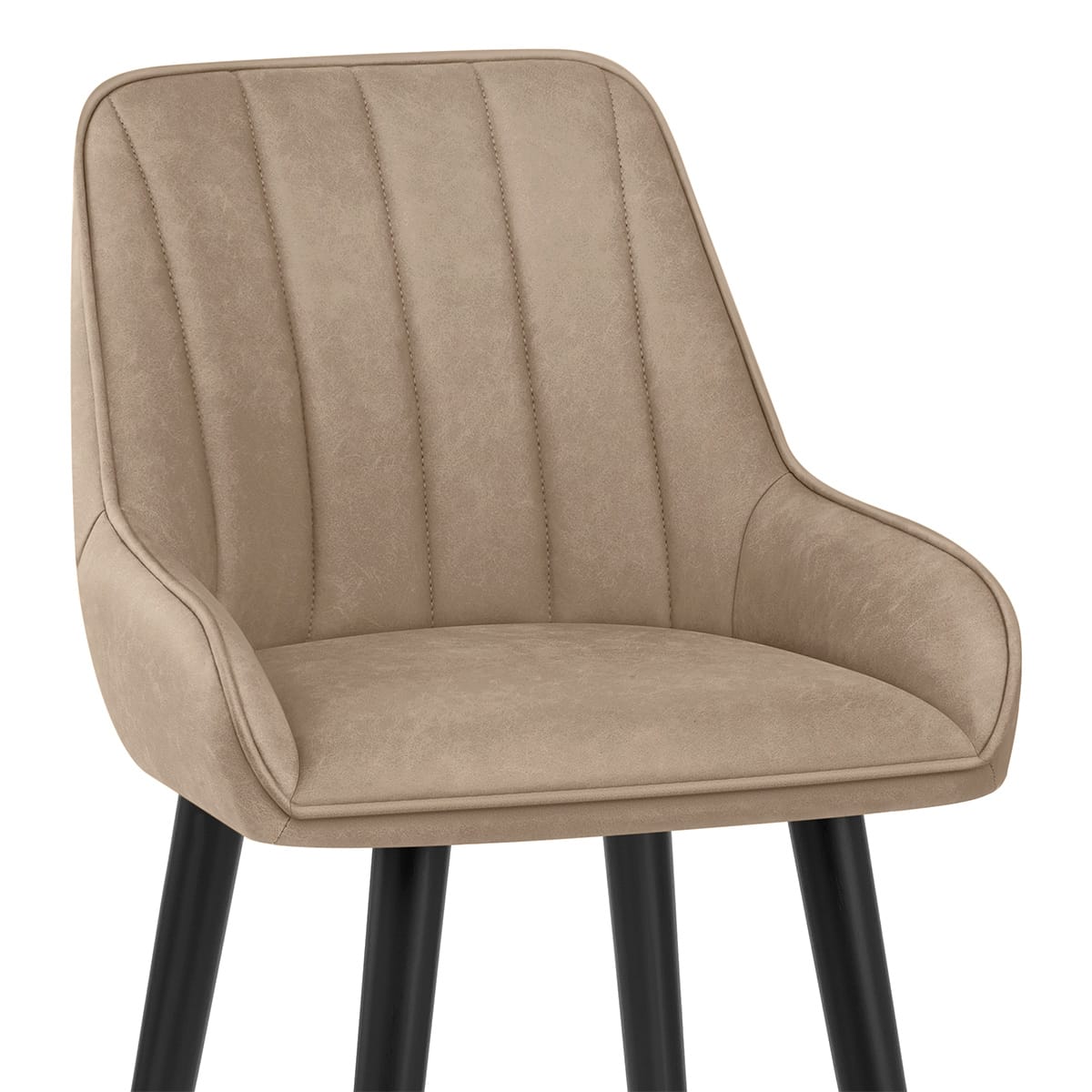 The cushioned seat and high backrest create a sense of both luxury and ease as they are wrapped in beautiful brown faux leather. Vertical stitched detailing adds depth and definition, while soft side supports enhance posture and comfort. Finished with piping around the edges, the design of the seat offers a tailored look that pairs seamlessly with any decor style.