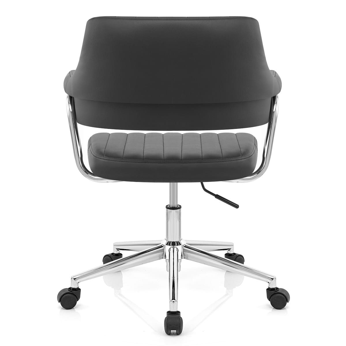 A gas lift mechanism sits concealed within the single chrome column, providing adjustable height and 360 swivel for premium adaptability. Last but not least, a five spoke wheeled base with black nylon castors delivers exceptional mobility, ensuring the Skyline can be used in a wide range of interior settings.