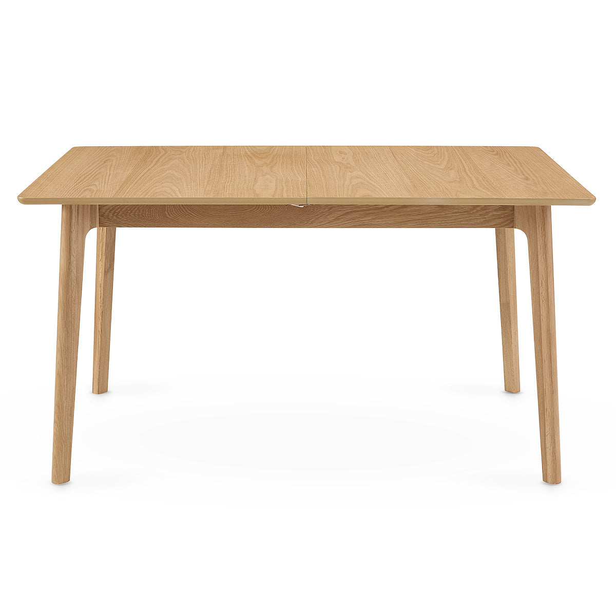 Crafted from solid wood with an oak veneer and finished in a protective lacquer, this table is built for style and durability. Its functional rectangular top measures 140cm, but is capable of extending to 180cm when needed, with a 2cm thickness for a sleek profile. Seating 4 to 6 people, it provides flexibility for family meals or entertaining guests.