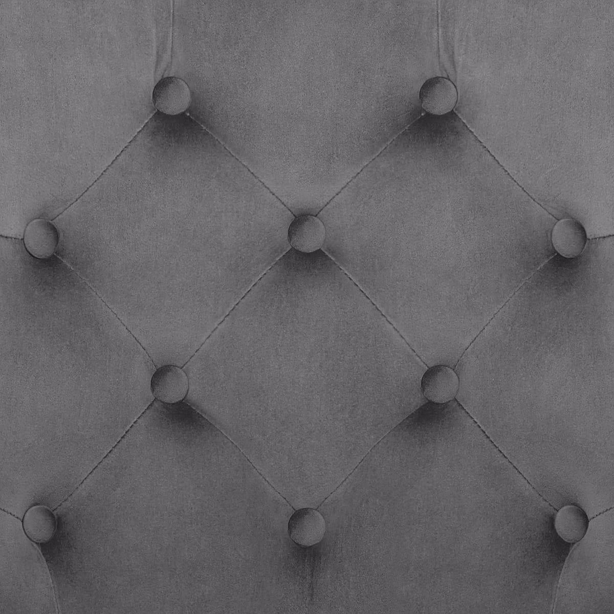 Tasteful button detail and patterned stitching lend the inner backrest a more elegant appearance, on top of its soft charcoal velvet upholstery. The subtly enclosed shape of the back section pairs with a cushioned seat pad for sublime comfort.