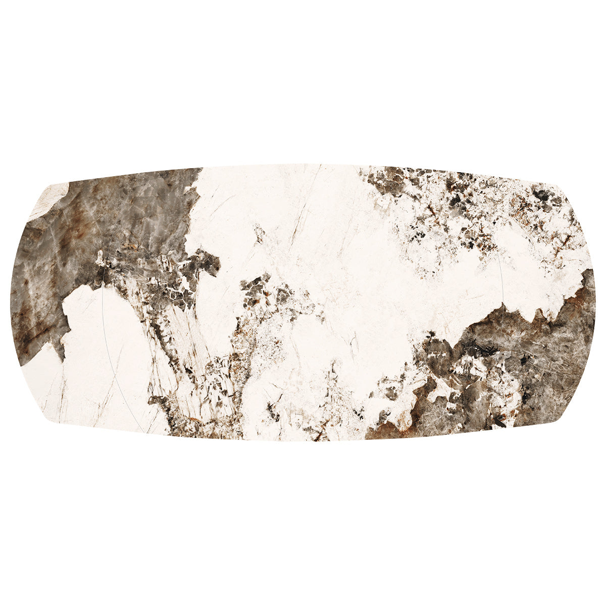 Supporting the Solaris Pandora is a bold geometric base in black powder-coated metal. The crisscross design creates a sense of movement and balance, lending the table both stability and architectural presence. Subtle bracing bars reinforce the top, while discreet protective feet help to look after your flooring. This frame is engineered for strength yet styled for impact, ensuring the table remains as practical as it is striking.