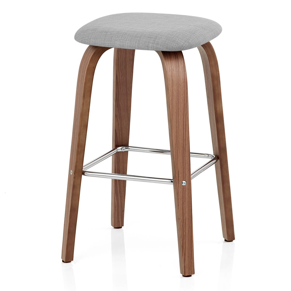 Fixed at the perfect height for domestic use, the four-legged frame is crafted from natural bentwood with a stylish walnut finish. A square-shaped bracing bar is also included, made of contrasting mirrored chrome, and doubling up as a supportive perch for your feet. Finally, the Stockholm is complete with protective floor plugs, designed to help keep your floor safe from scratches.
