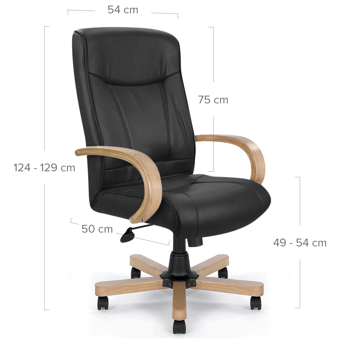 The beautifully made Tampa executive office chair comes in black or cream soft leather. The seat and backrest, generously proportioned and with added padding for the lumbar region, give excellent levels of comfort and support. The lockable seat has a full tilt mechanism and adjustable tension control. The striking wooden armrests and base are available in mahogany or oak and make this chair stand out from others. Metal reinforcements beneath the base help to keep the Tampa strong and sturdy, with wheels giving an added touch.