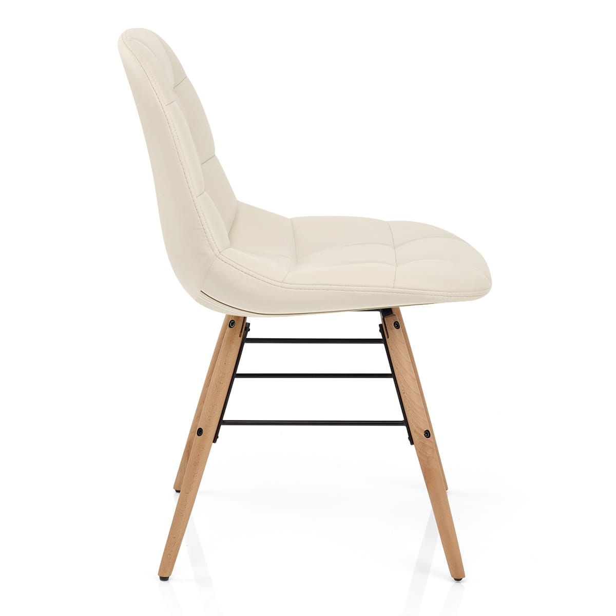 Upholstered in chic cream faux leather, the ergonomic seat is filled with dense padding and has panelled stitch detailing as a chic touch.
