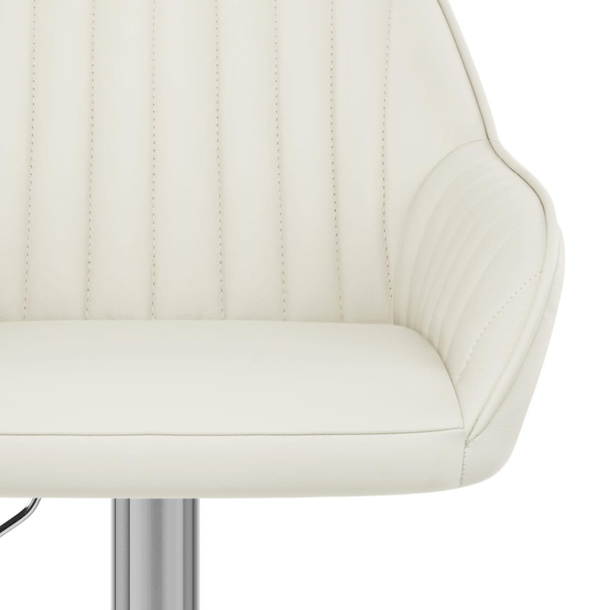 A magnificent shade of cream real leather complements the Tokyo's frame and gives the stool a refined aesthetic. The seat has a wraparound design incorporating a vertical stitch patterned backrest and matching arms, plus a smooth pad section that allows for irresistible levels of comfort. Piping frames the seat and ties it all together.
