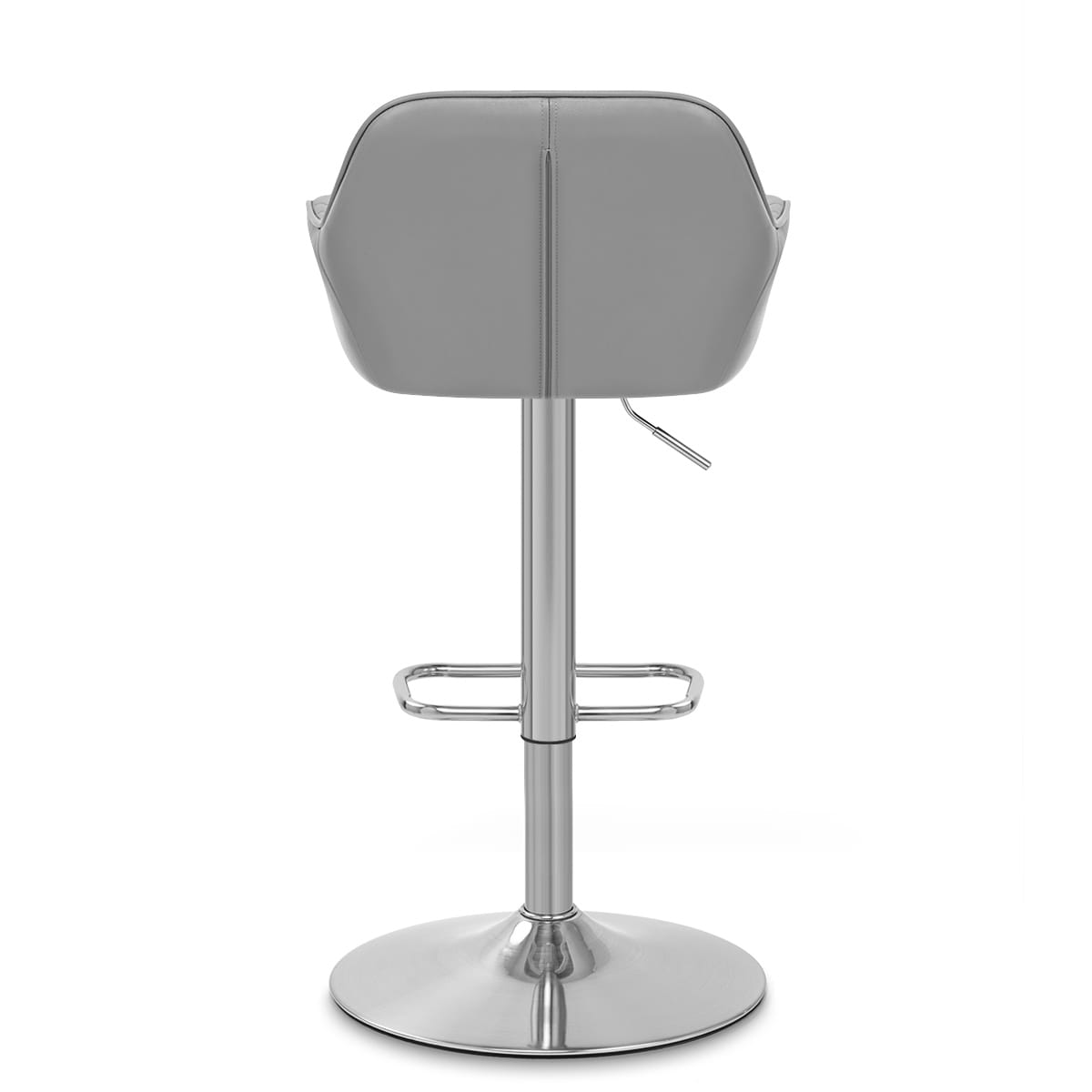 Pairing the more retro seat design with a brushed steel frame finish creates a perfectly contemporary accent. The stool's gas lift mechanism allows for variable height, with a rectangular footrest providing support while seated, as well as 360 degree rotation for easier access to a bar or counter. Beneath the base component is a helpful floor protector, which serves to reduce the risk of scuffs or scrapes.