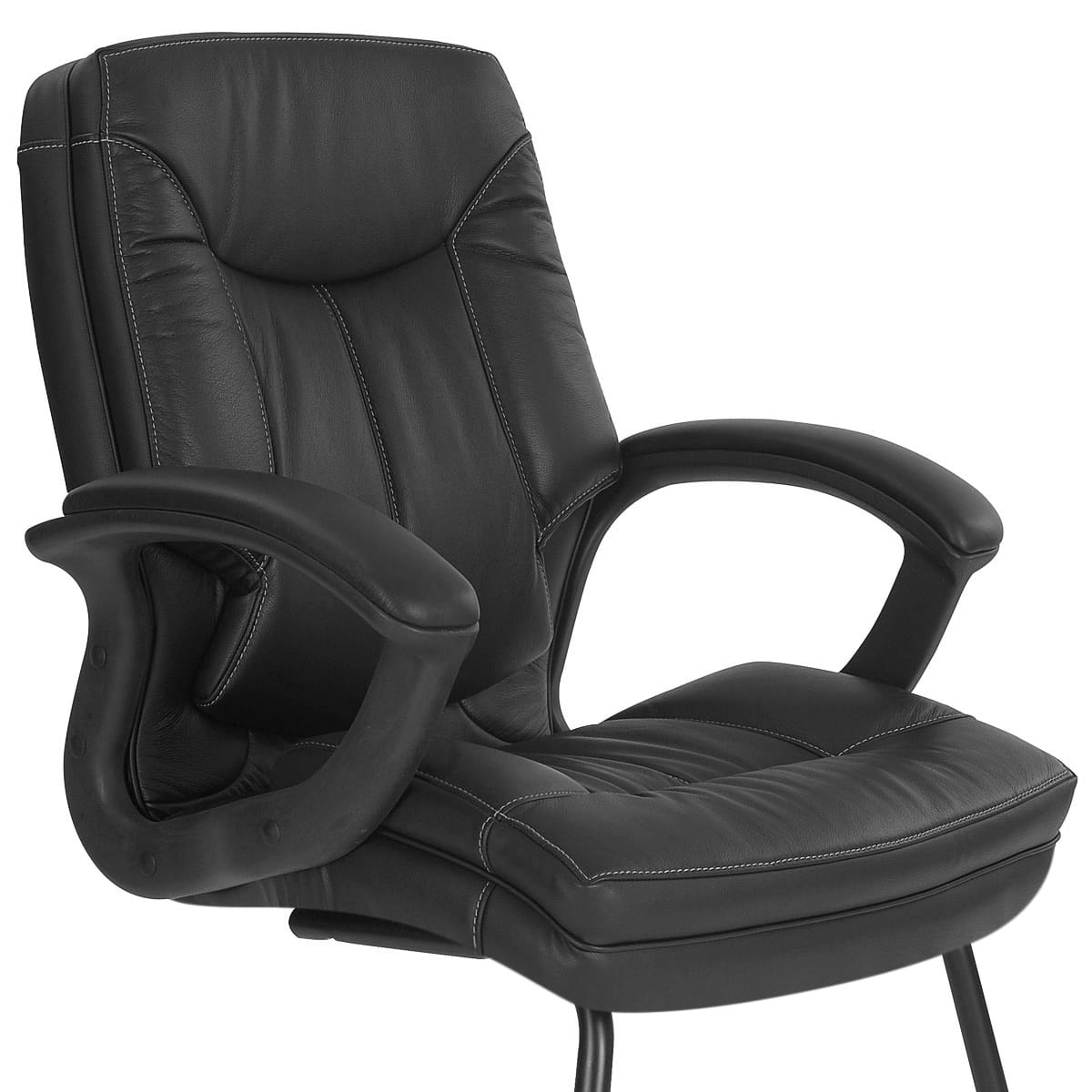 The Vancouver executive office chair is made from sculptured foam padding clad in soft leather with stitch detailing. The contoured seat and high backrest, along with the padded armrests give superb comfort and support. The generously proportioned seat makes sure that any user will remain at ease for long periods of usage. The Vancouver is supported by a expertly shaped tubular metal fixed frame that gives excellent stability to the seat.
