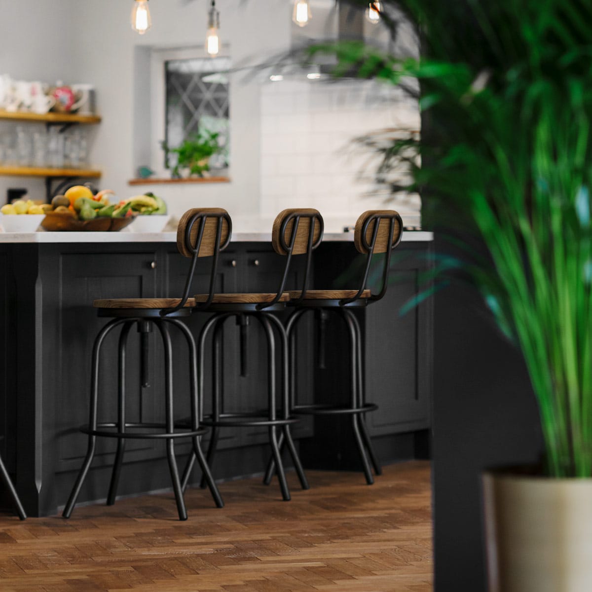 Bar stools generally come in two main heights - kitchen counter (around 65cm) and bar height (around 75cm). Measure the distance from your floor to the underside of your counter and leave around 25–30cm for comfortable legroom.