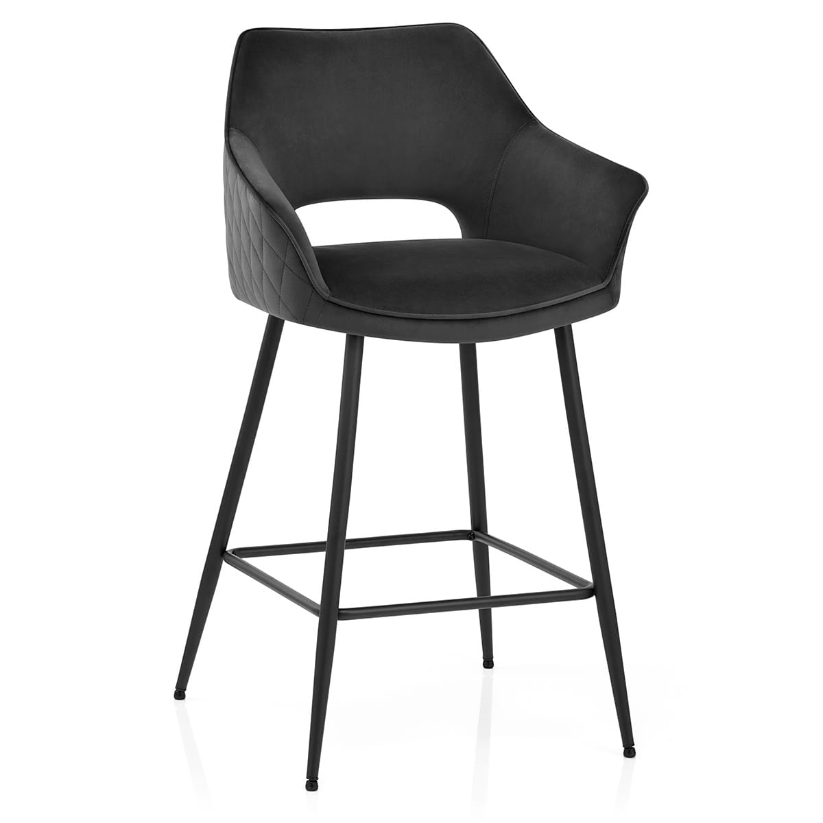 The partially divided Viola seat includes an arching backrest with arms, its decorative piping curving around the lip of the seat pad for greater definition. Diamond pattern stitching on the exterior backrest gives the black velvet covering a refined quilted aesthetic.
