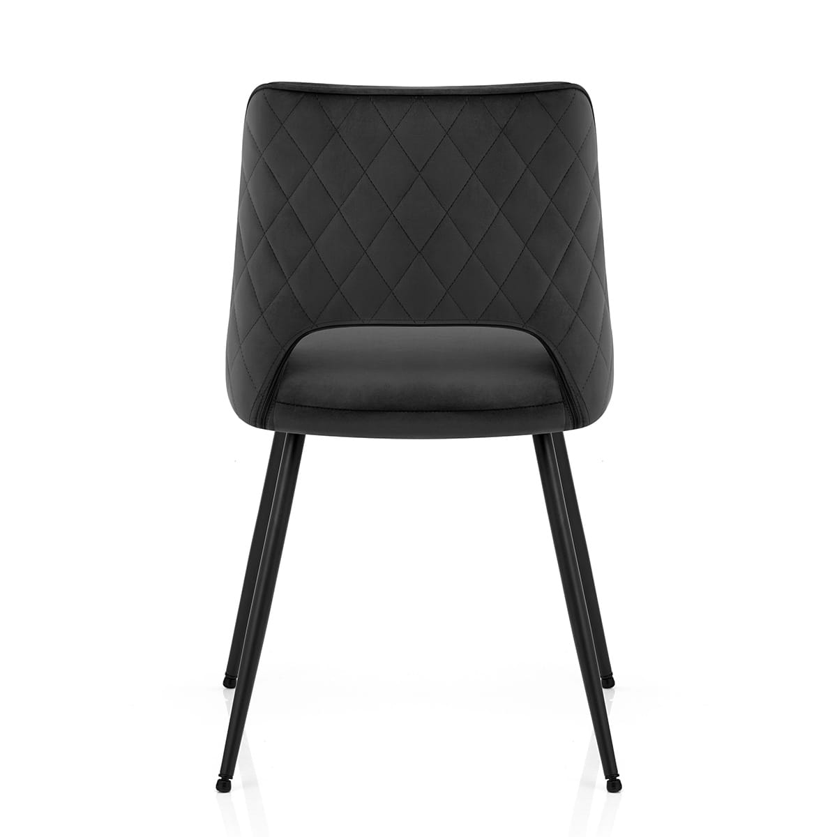 Gently and ergonomically contoured, the Viola's backrest features a debonair shade of black velvet that matches its smoothly covered seat pad. The eye catching division between pad and backrest is made more prominent by the diamond stitched embellishment on the chair's exterior.