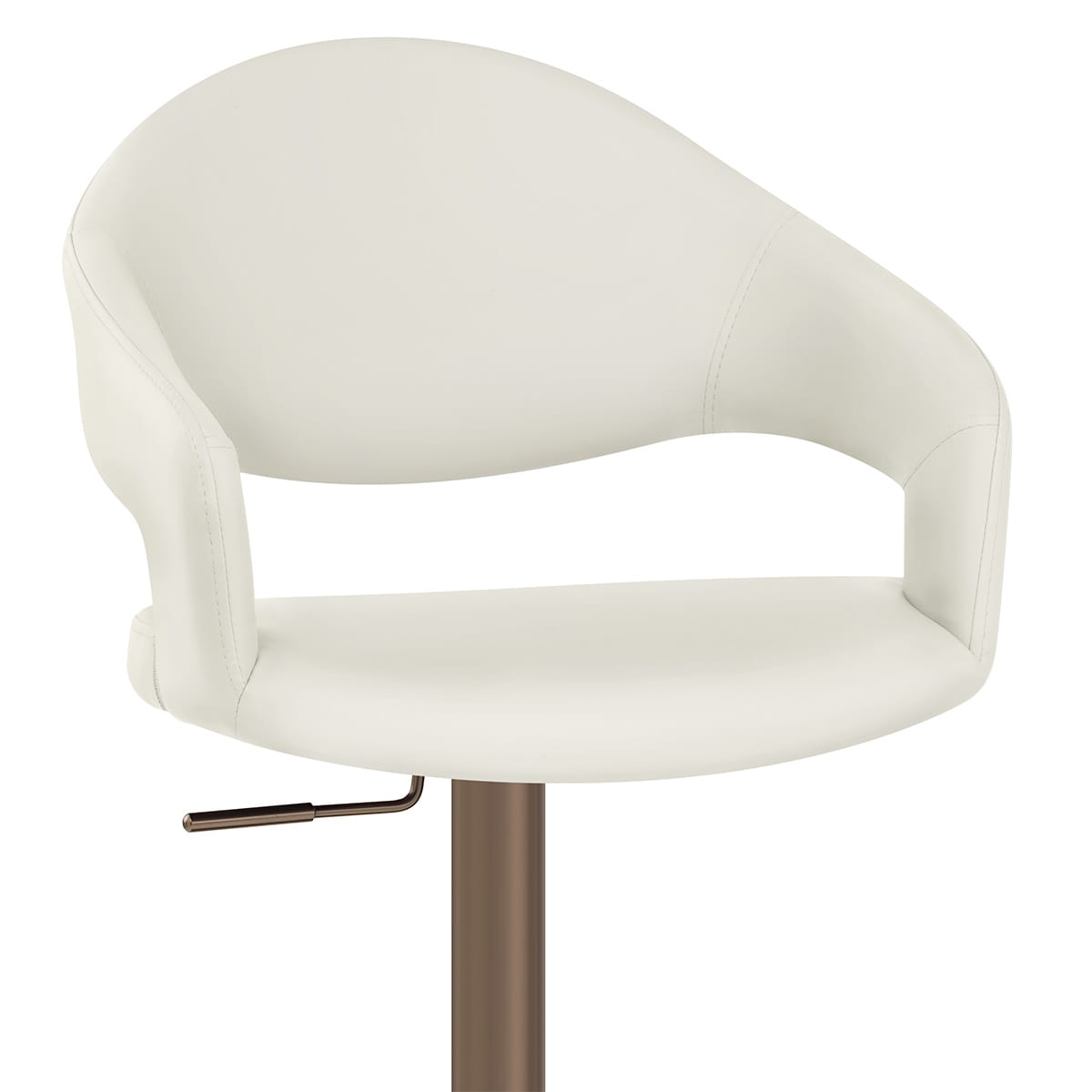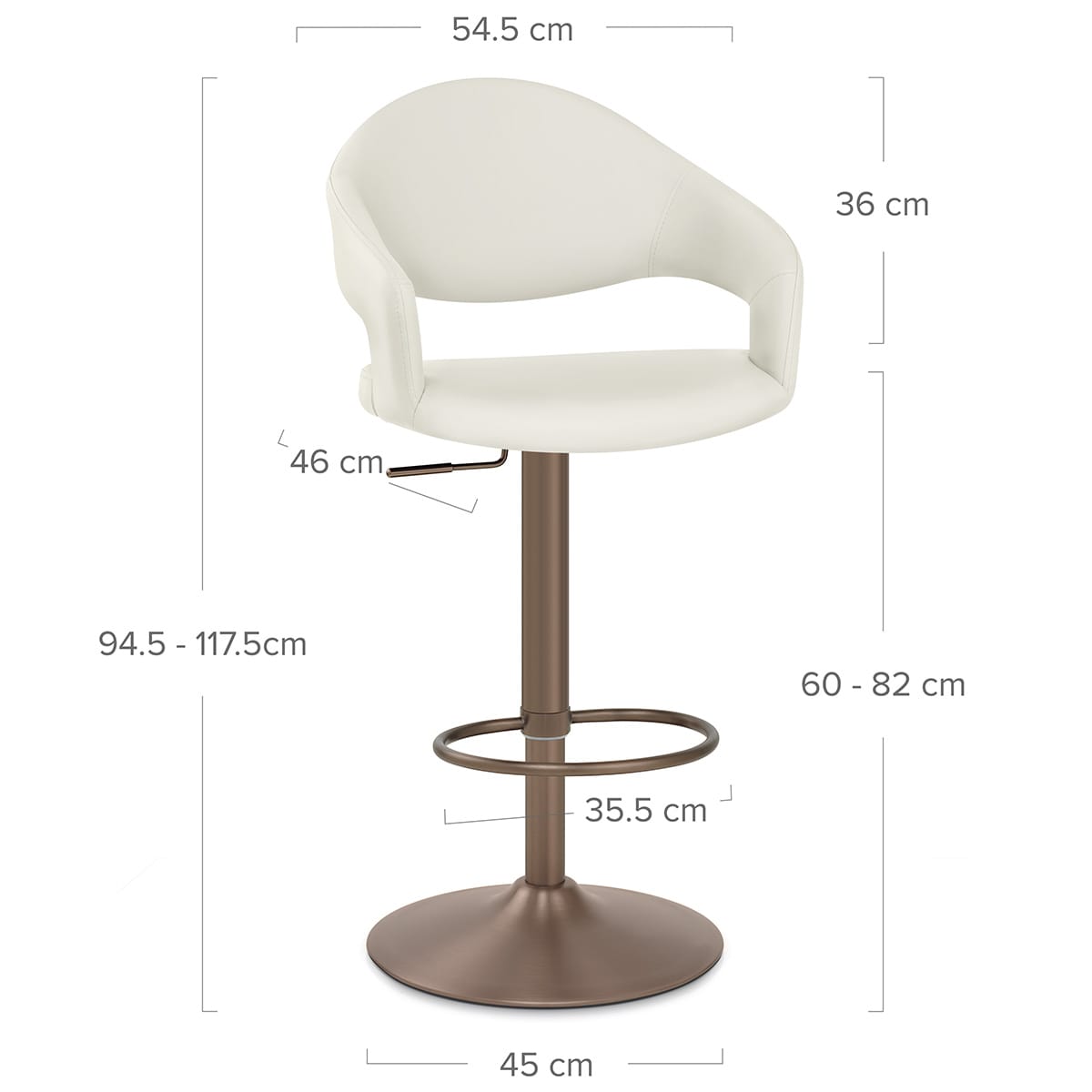 Finished in a gorgeous, deep, brushed bronze, the frame grants you the ability to swivel 360-degrees and adjust the height. In the same metal material, but styled to be as sleek as the seat, is the oval footrest. Equally curved is the sturdy base, sporting a ringed floor protector that helps diminish the risk of marks to your floor.
